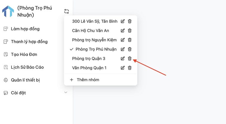 Hướng dẫn xóa nhóm tài sản khỏi danh sách cho thuê